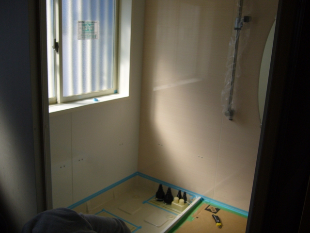 内部の工事も進んでいますよー。ホワイトのサッシが入り床・壁・天井も進んでいますので、だんだんと図面上のものが立体化してきました。